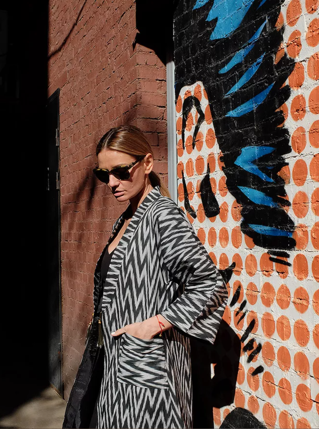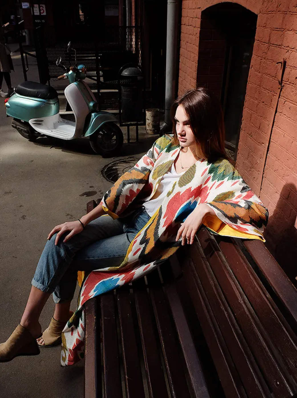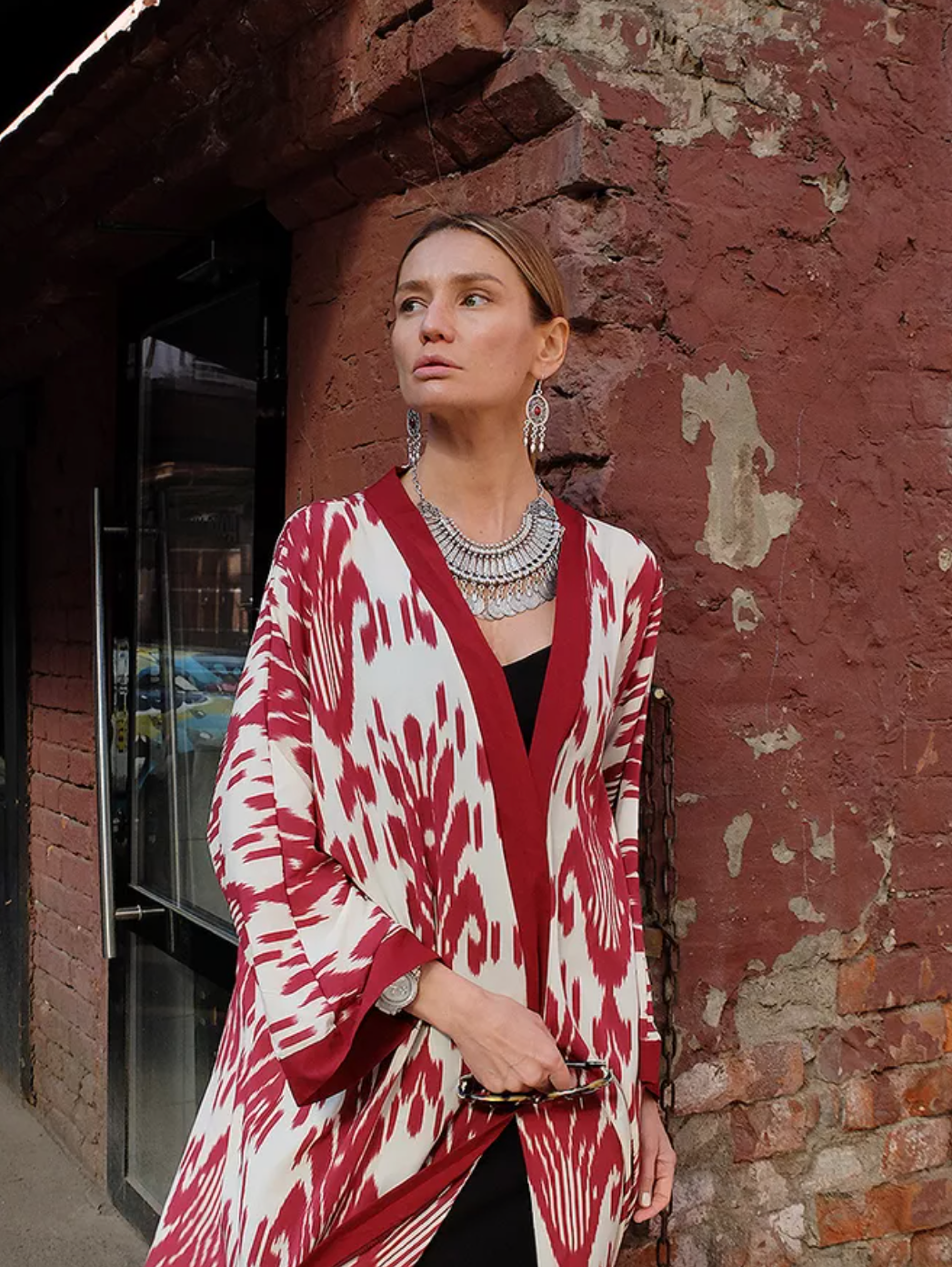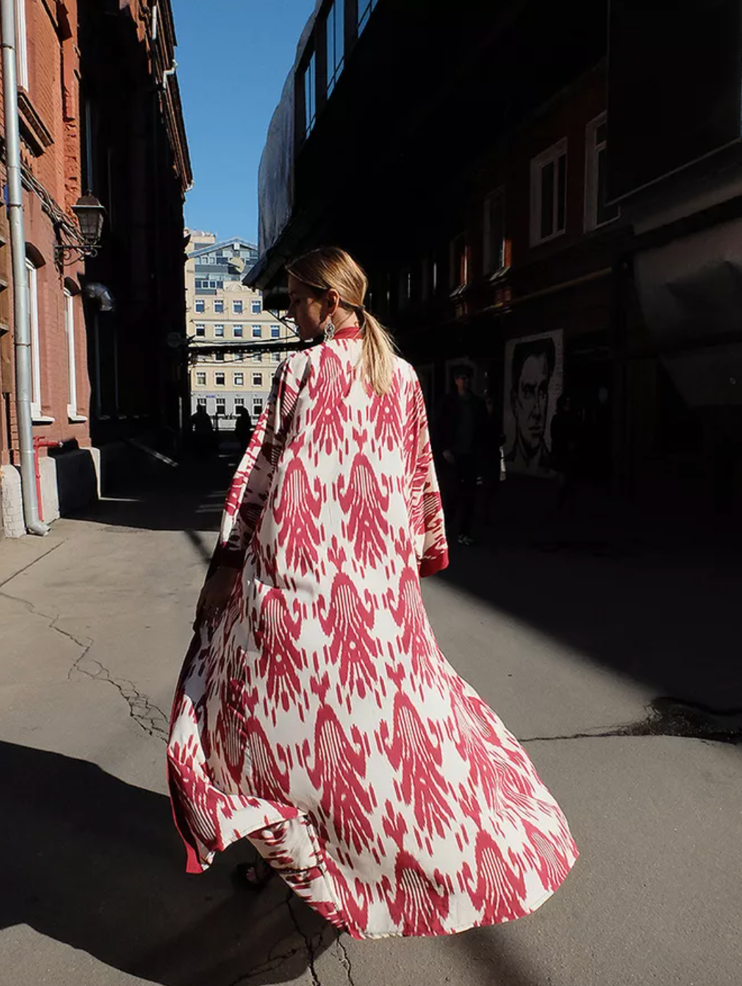 Daria, the founder of the nahalate brand, was born in Central Asia and literally from childhood absorbed the oriental love of bright colors and relaxed style. The idea of the collection of fashionable robes was suggested by the adras fabric, which has long been a national treasure and part of the culture of Uzbekistan. This is a fabric made of cotton or silk, which is still made by hand using only natural dyes. And as a result, this method guarantees uniqueness to each item from adras, because there cannot be absolutely identical drawings.