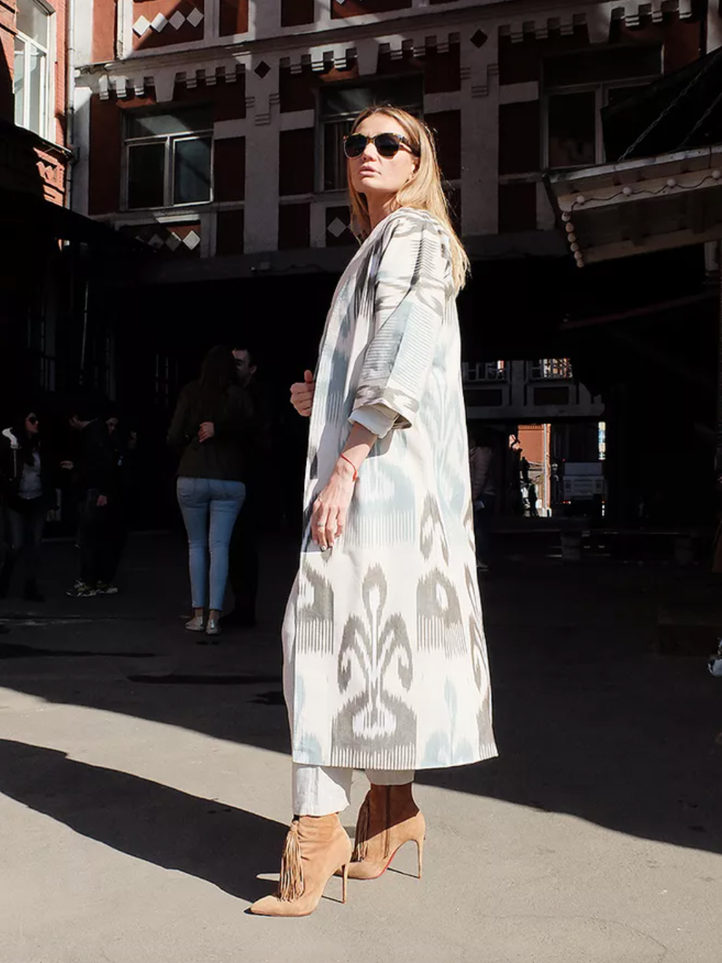 The brand's source of inspiration is traditional Uzbek robes — made of fabric called "adras", they combine oriental flavor and Western practicality.